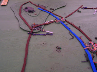 | My map of the battlefield of Leipzig, drawn for my developing scenario and eventual game(s). The area represent in this game is indicated roughly by the red 'circle' |
